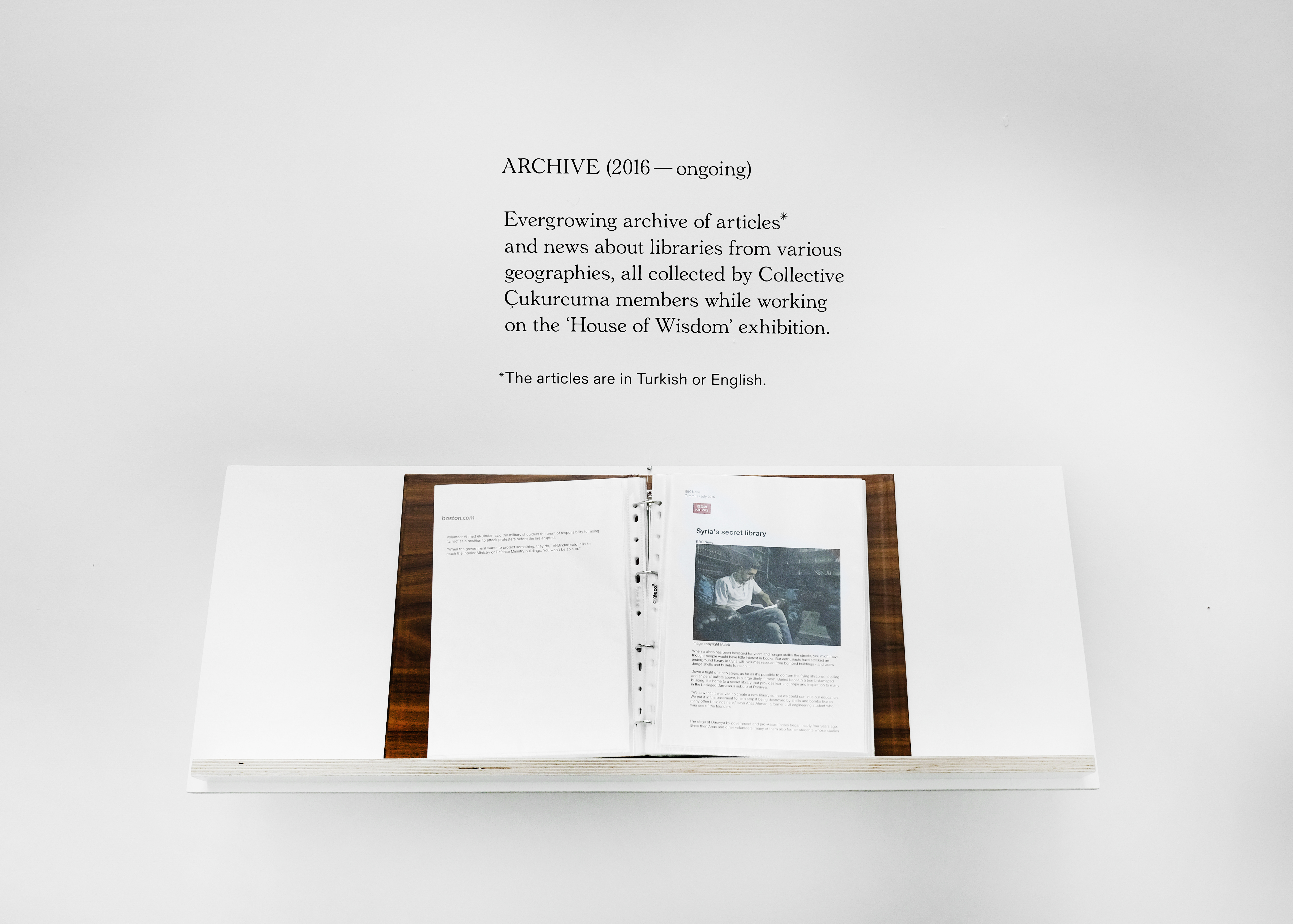Throughout history, libraries have been perceived as places where information on life and space are organised, read, and interpreted. Their political significance, however, has at times been underestimated. As in the example of the original House of Wisdom*, libraries are also known as centers of research, learning, and sharing. This concentration and exchange of knowledge makes them important symbols of political power and the formation of cultural identity. Based on the power of libraries, and Foucault’s notion of the archive as ‘the general system of the formation and transformation of statements’, the curators followed their archival urge and decided to build their own archive-library. To shed light on the increasing levels of censorship on information, knowledge and the current sociopolitical situation in and around Turkey, they invited artists and researchers to take part in the project. The House of Wisdom, ever-evolving library-exhibition aims to rethink the political nature of books, whose mere existence is under threat, and ultimately asks the question: ‘What could be the outcome of collectively rethinking the notion of the archive and knowledge production through art, particularly when issues such as censorship and suppression of information are involved?’